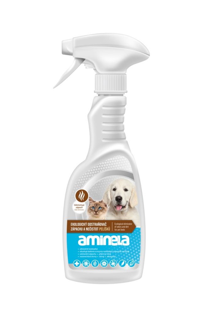 Aminela Clean odstraňovač zápachu a nečistot pelíšků a matrací je zdravotně nezávadný přípravek, který se používá k odstranění zápachu psích i kočičích pelíšků. Vhodné k čištění povlaku i výplně pelíšku. Obsahuje bakterie a enzymy, které šetrně a účinně rozkládají organické nečistoty. Přípravek zanechává příjemnou vůni.