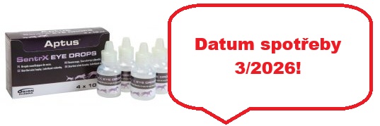 Aptus SentrX oční kapky je lubrikant rohovky obsahující biopolymery - modifikovanou zesíťovanou kyselinu hyaluronovou. Poskytuje dlouhotrvající zvlhčení a lubrikaci oční rohovky, čímž potlačuje symptomy tzv. “suchého oka” (KCS, keratokonjunctivitis sicca). Tyto oční kapky jsou určeny pro psy se syndromem tzv. “suchého oka”, a pro všechny ostatní případy vyžadující zvlhčení a lubrikaci oční rohovky.