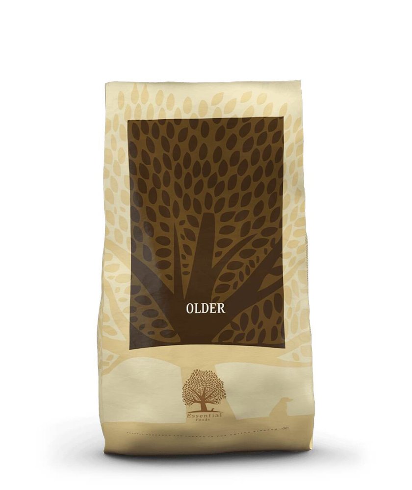 Essentialfoods Older je kompletní superprémiové krmivo upravené a vhodné pro starší psy BEZ OBILOVIN. Psi mohou začít s přechodem na Older, když dosáhnou 2/3 z průměrné délky života.