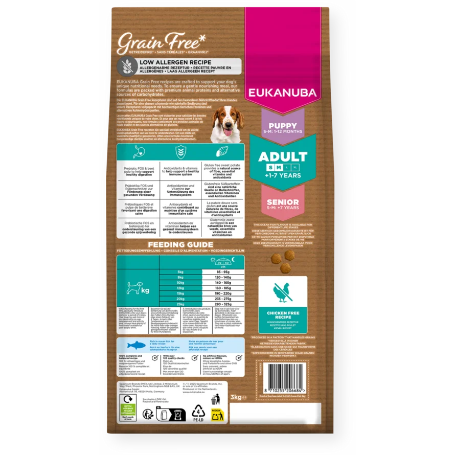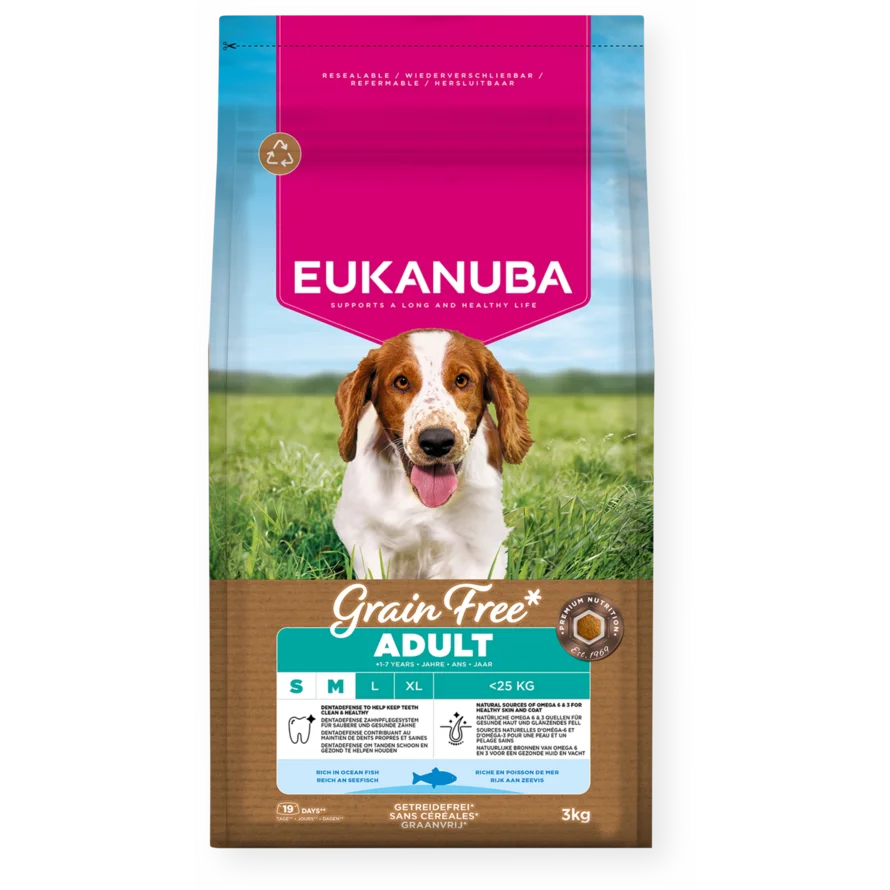 Toto suché krmivo EUKANUBA Grain Free* je speciálně vyvinuto pro dospělé psy malých a středně velkých plemen od 1 roku do 7 let.