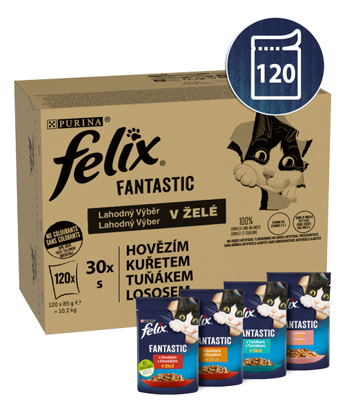 Felix Fantastic Multipack jsou masové kapsičky pro kočky. S hovězím, kuřetem, tuňákem a lososem v želé. Jsou plné zdravých dobrot a uspokojí 100 % denních potřeb Vaší kočky, pokud jsou podávány podle krmného návodu.