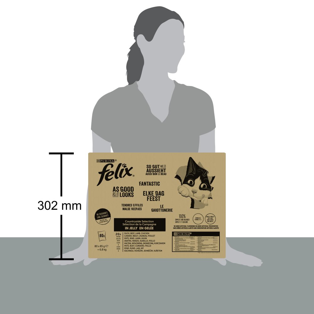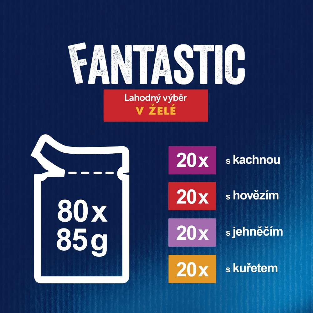 FELIX® Fantastic je řada neodolatelných krmiv, která vypadají, voní a chutnají tak lahodně, jako jídlo, které byste sami uvařili. Každá receptura, vyrobená z kvalitních surovin, obsahuje křehké kousky v želé, aby se vaše kočka mohla do chutného krmiva pořádně zakousnout! Zároveň jsou zdrojem omega-6 mastných kyselin a mají správnou kombinaci vitamínů, aby udržely vaši kočku plnou energie a připravenou k uličnictví! Jsou plná dobrot a uspokojí 100 % denních potřeb vaší kočky, když jsou podávána podle krmného návodu. To není všechno! FELIX Fantastic je dostupný v široké řadě lahodných receptur ve šťavnatém želé, aby každý den uspokojil lásku vaší kočky po rozmanitosti. Opravdu chutnají tak dobře, jak vypadají! FELIX je prostě neodolatelný! 100% kompletní a vyvážené. Zdroj omega-6 mastných kyselin. Bez přidaných umělých konzervantů. Vitamíny A a E. Přizpůsobeno i pro sterilizované / kastrované kočky.