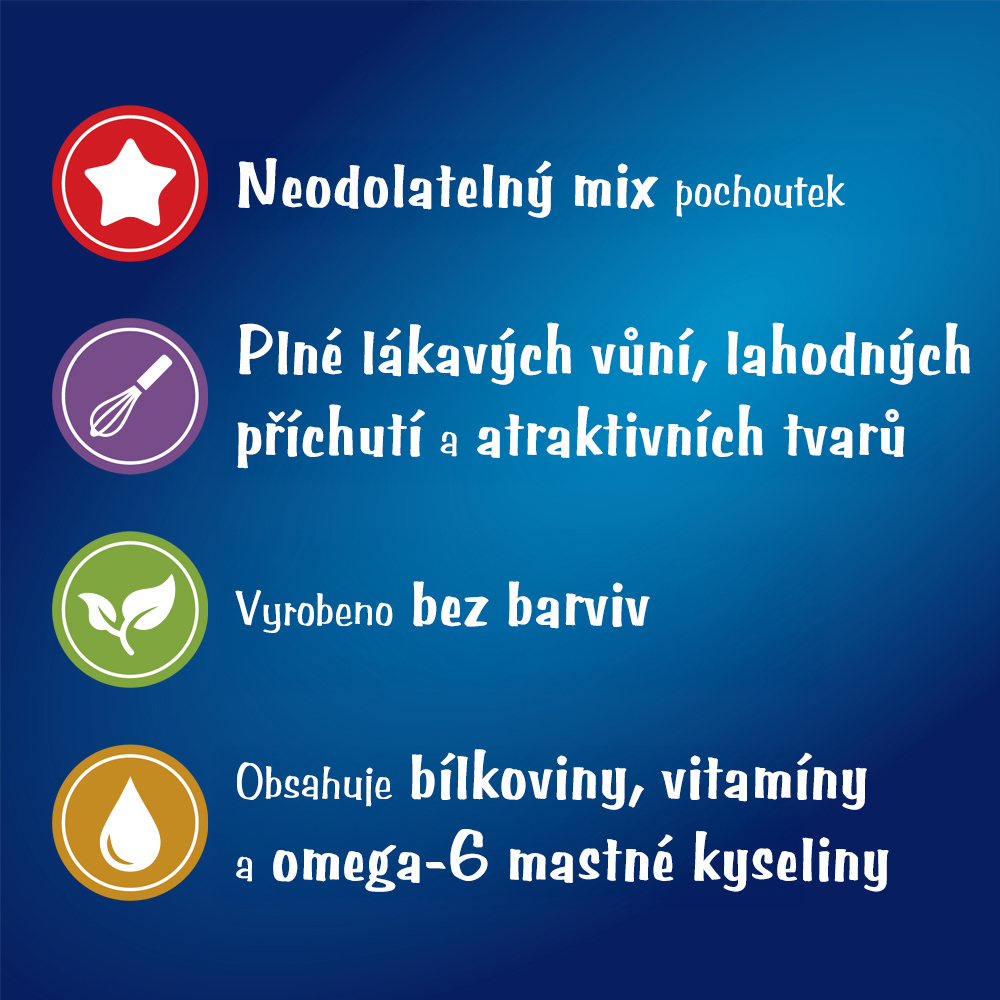 Rozhodující přednosti pamlsků pro kočky Felix Party Mix Mixed Grill 60 g