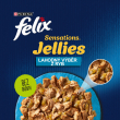FELIX® Sensations® Jellies je řada neodolatelných krmiv vyrobených z kvalitních surovin, které výtečně vypadají, voní a samozřejmě lahodně chutnají vaší kočce. Každé krmivo FELIX Sensations Jellies obsahuje křehké kousky pro potěšení vaší kočky servírované v různě ochucených omáčkách pro mimořádnou chuť a lákavou vůni. Zároveň jsou zdrojem omega-6 mastných kyselin a mají správnou kombinaci vitamínů, aby udržely vaši kočku plnou energie a připravenou k uličnictví! Jsou plná dobrot a uspokojí 100 % denních potřeb vaší kočky, když jsou podávána podle krmného návodu. To není všechno! FELIX Sensations Sauces jsou dostupné v celé řadě kombinací chutí v neodolatelných omáčkách! Takže pokud máte to štěstí mít tak senzační kočku jako je FELIX, uspokojte každý den její lásku po rozmanitosti s krmivem FELIX Sensations Jellies! FELIX je prostě neodolatelný!