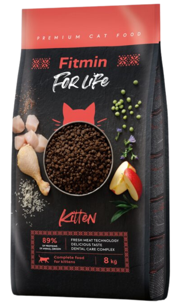 Fitmin Cat For Life Kitten je kompletní krmivo pro koťata do 12 měsíců, březí a kojící kočky.