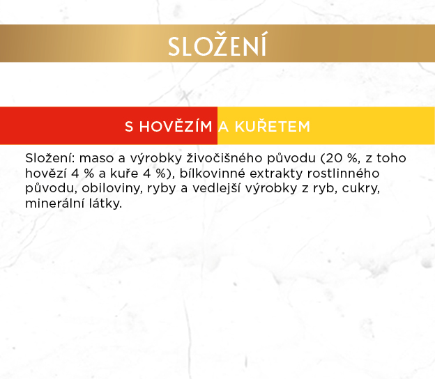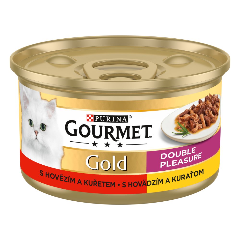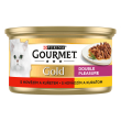 GOURMET Gold vytvořil Double Pleasure, lahodná krmiva, která budou každý den rozmazlovat její mlsný jazýček zajímavým chuťovým zážitkem. Skvělá kombinace lahodných kousků a šetrně uvařených jemných plátků v jedné porci nabízí vaší kočce potěšení z různých chutí a textur. GOURMET Gold Double Pleasure je dvojnásobné potěšení pro vaši kočku