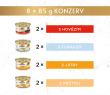 Jemné paštiky s hovězím, kuřetem, lososem a játrou, pečlivě připravené tak, aby nabídly vaší kočce požitek z delikátní a jemné textury.