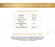 S HOVĚZÍM: Maso a výrobky živočišného původu (57%, z toho 4% hovězí), minerální látky, vedlejší výrobky rotslinného původu, cukry.
