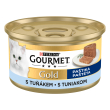 GOURMET Gold vytvořil paštiky, lahodné receptury, které budou rozmazlovat její mlsný jazýček novým chuťovým zážitkem. Jemné paštiky s hovězím, kuřetem, lososem a dalšími vynikajícími příchutěmi, pečlivě připravené tak, aby nabídly vaší kočce požitek z delikátní a jemné textury. GOURMET Gold paštiky svádí vaši kočku jemnou sametovou chutí!