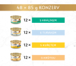 m.j./kg: Vit A: 850; Vit D3: 130 [kromě receptury s tuňákem: 0].