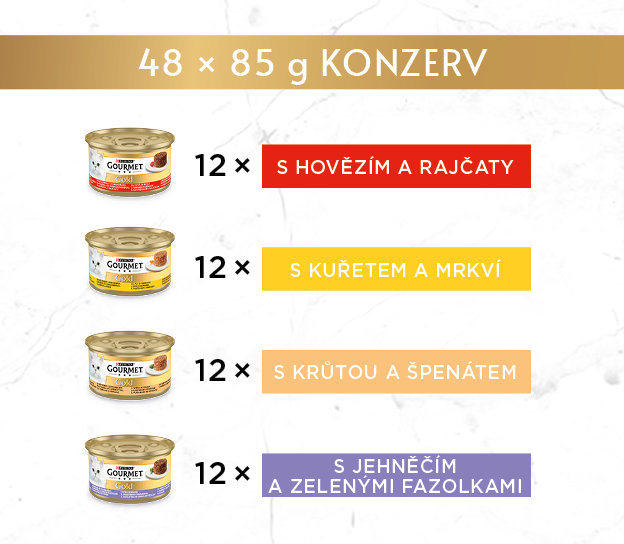 GOURMET™ Gold Savoury Cake představuje jemně pokrájené kousky s hovězím, kuřetem nebo jinými vytříbenými příchutěmi a s dotekem vybrané zeleniny, pečlivě ochucené jen špetkou omáčky. To vše se snoubí v lahodný dortík a vaše kočka si tak může vychutnat každé sousto. Všechna krmiva GOURMET™ Gold jsou bez přidaných barviv a umělých konzervantů.