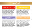 S jehněčím a zelenými fazolkami:maso a výrobky živočišného původu (26 %, z toho jehněčí 4 %), bílkovinné extrakty rostlinného původu, ryby a vedlejší výrobky z ryb,zeleniny (0,8 % sušených zelených fazolek, odpovídá 7,2 % zelených fazolek), vedlejší výrobky rostlinného původu, cukry, minerální látky.