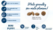 Je ideální potravou pro bezproblémové a šetrné krmení také citlivých štěňat všech malých plemen psů do hmotnosti 10 kg v dospělosti. Receptura bez pšenice nabízí vyváženou paletu pěti vybraných živočišných bílkovin té nejvyšší kvality. Dobře snášené jehněčí maso, lehce stravitelná drůbež, výživné ryby a kvalitní vaječné bílkoviny zajišťují harmonický růst a optimální vývoj vašeho štěněte. Cenné novozélandské mořské mušle (Slávka pyskatá) pomáhají zajistit, aby se pohybový aparát vašeho malého štěněte mohl optimálně vyvíjet. Vápník a vitamín D3 jsou z velké části zodpovědné za pevnost a optimální vývoj kostí. Omega-3 a omega-6 mastné kyseliny z ryb a lněných semínek zajišťují lesklou srst a zdravou kůži. Navíc přidaný komplex přírodních živin přináší směs bylinek, antioxidantů a speciálních kvasnic, a tím podporuje střevní flóru a celý gastrointestinální trakt.