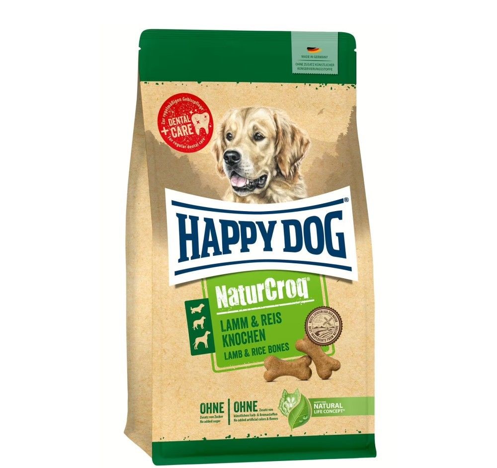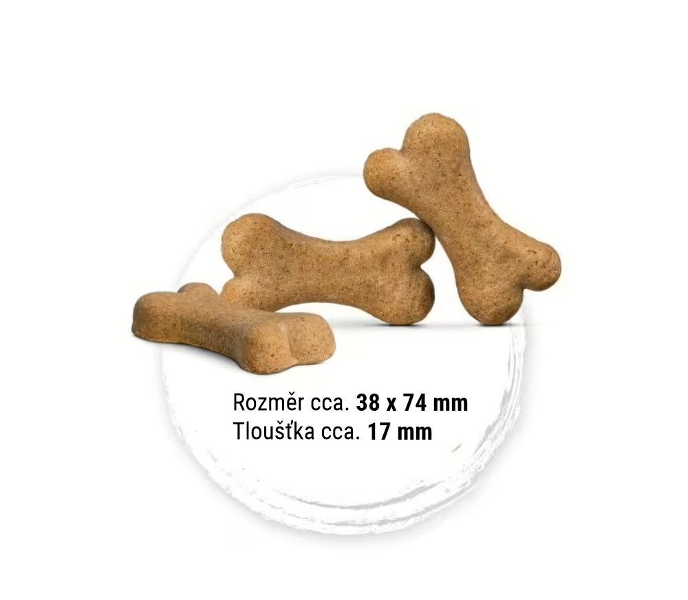Středně velkým psům můžete jako odměnu podat až deset těchto lahodných psích sušenek denně a velkým psům s hmotností nad 30 kg můžete podat až 17 kostí denně. Tyto lahodné psí sušenky pečeme v troubě dozlatova bez přidání umělých barviv, aromat a konzervantů. Pro první vyzkoušení doporučujeme naše NaturCroq kosti s jehněčím masem a rýží v balení 500 g. Pro ty, kteří si na ně již zvykli, nabízíme lahodné psí sušenky v 5kg skladovacím balení pro delší požitek. Praktický vedlejší efekt: pečený psí pamlsek může pomoci při každodenní péči o zuby.