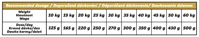 | Určení pro psa: | bezobilné, běžná zátěž, citlivý |