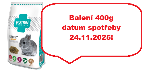 Do 8. měsíce věku je možné neomezené dávkování. V pozdějším věku by králík měl přejít na krmivo Nutrin Complete Rabbit (v kombinaci s krmivem Nutrin Complete Rabbit, je krmivo Nutrin Complete Rabbit Junior vhodné pro březí a kojící samice). Vždy zajistěte neomezený přístup k senu a čerstvé vodě. Spestření ve formě zeleného krmiva, čerstvého ovoce, zeleniny a ohryzu je možné. Veškeré změny, týkající se krmné dávky, by měly být prováděny s ohledem na tělesnou hmotnost, kondici a zdravotní stav jedince.