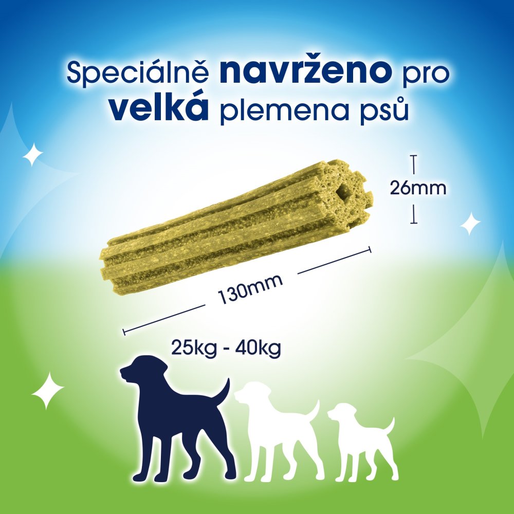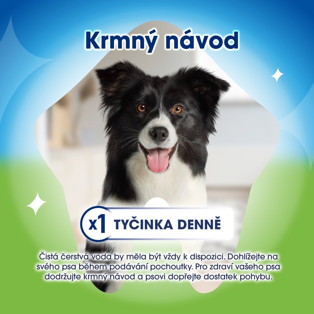 Krmný návod: pro velkého psa s hmotností od 25 do 40 kg: 1 tyčinka denně. Čistá čerstvá pitná voda by měla být vždy k dispozici. Dohlížejte na svého psa během podávání pochoutky. Pro zdraví vašeho psa dodržujte krmný návod a denně mu dopřejte dostatek pohybu.