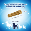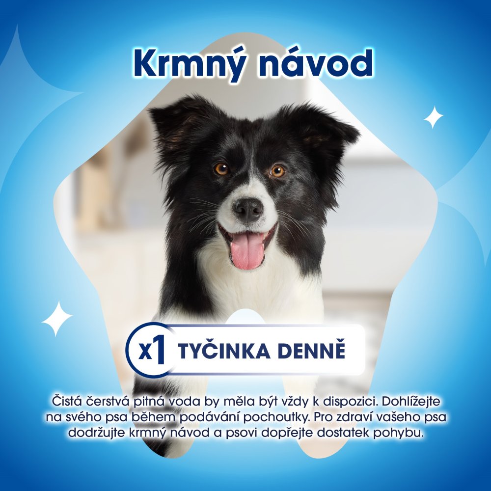 Pro středně velkého psa s hmotností od 12 kg do 25 kg: 1 tyčinka denně. Čistá čerstvá pitná voda by měla být vždy k dispozici. Dohlížejte na svého psa během podávání pochoutky. Pro zdraví vašeho psa dodržujte krmný návod a psovi dopřejte denně dostatek pohybu.