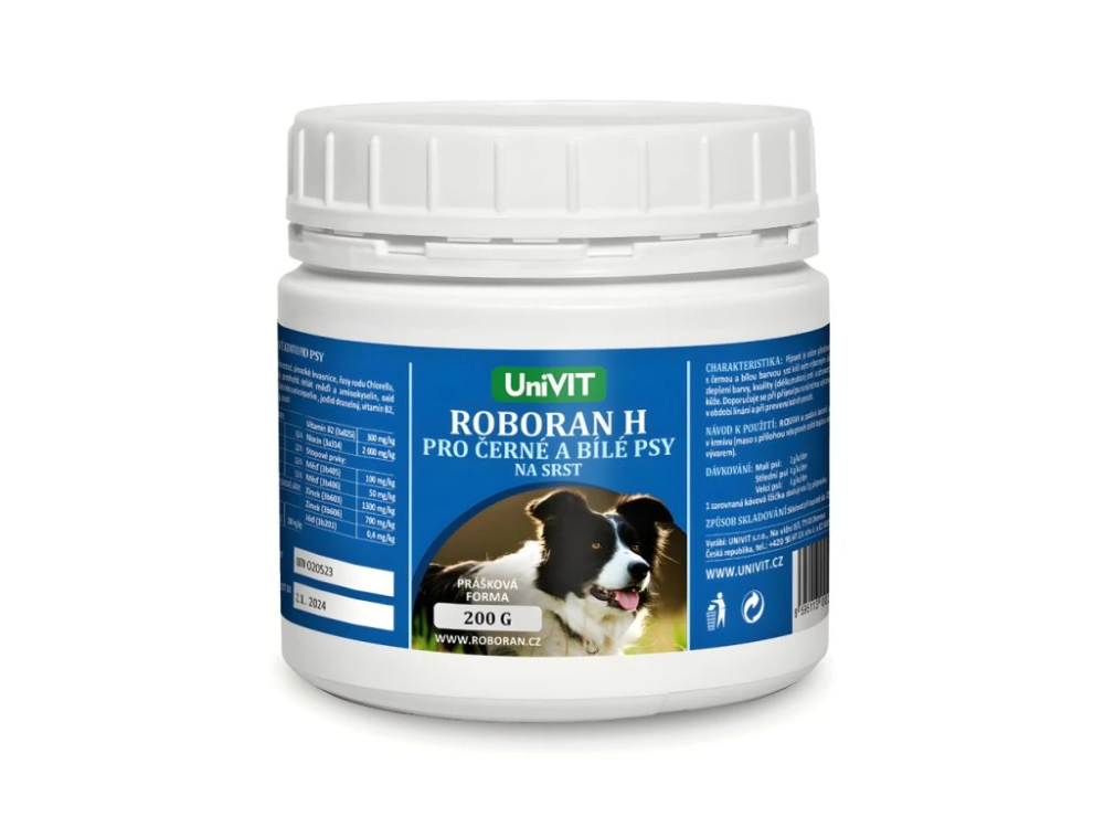 U černých a bílých psů zvyšuje kontrast barev bez vzniku žlutého nebo hnědého nádechu. Obsahuje chuťový doplněk, pro který jej psi rádi přijímají. Je doporučen jako součást léčby nemocí kůže a srsti (ekzémy, záněty, vypadávání srsti) a při hojení ran
