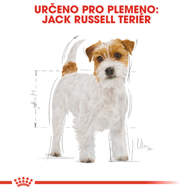 Royal Canin Jack Russel Terrier Adult je kompletní super prémiové krmivo pro dospělé (od 10 měsíců věku) čistokrevné plemeno Jack Russell teriéra. Kompletní krmivo Jack Russell Terrier, navržené přímo na míru tomuto aktivnímu plemeni, se vyznačuje speciální recepturou. Díky upravenému přísunu bílkovin, energie, vápníku a fosforu udržuje svalovou hmotu a podporuje harmonický růst, vitalita psů je udržována pomocí komplexu antioxidantů. Složení granulí obohacené o EPA & DHA a brutnákový olej pomáhá posílit funkci kůže jako bariéry a udržuje zdraví kůže a srsti. Redukci vzniku zubního kamene zajišťují chelátory vápníku.