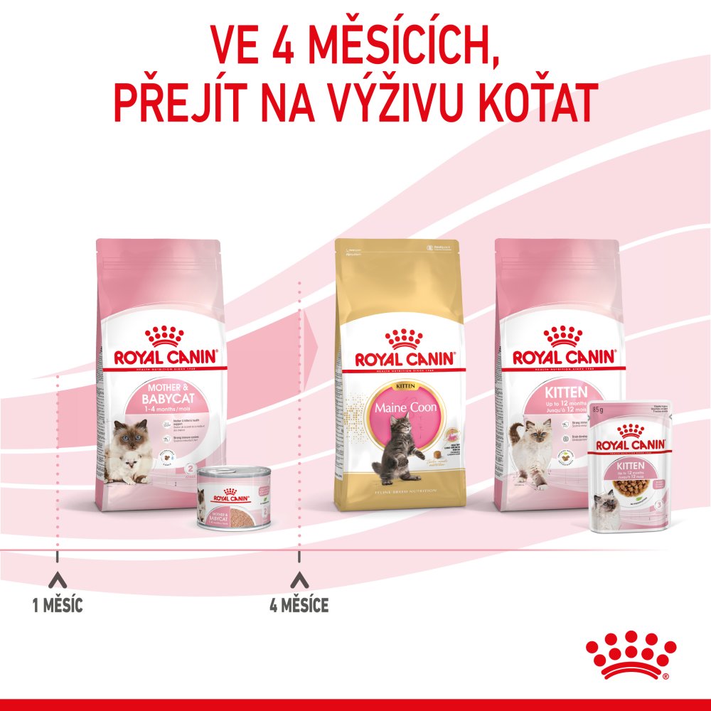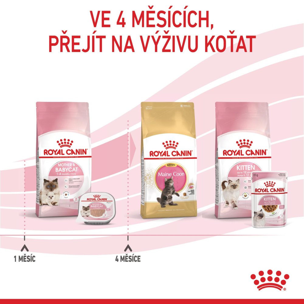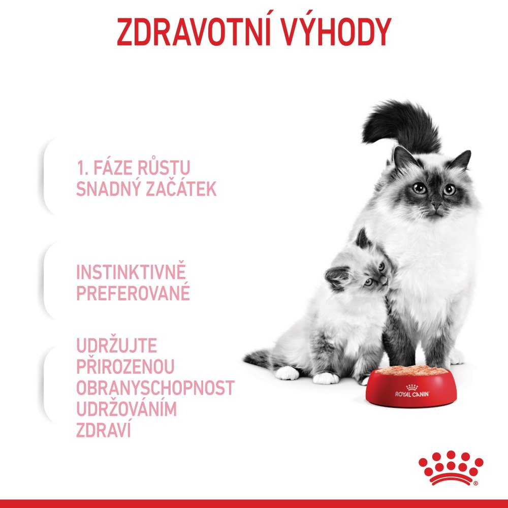 Možno kombinovat s granulemi Royal Canin Babycat nebo v dalším stádium růstu přejít na Royal Canin FHN Cat Kitten