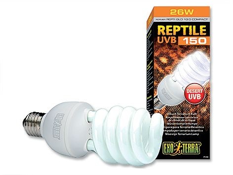 Žárovka Exo Terra Reptile UVB150 má velmi vysoké UVB záření, podobné slunci v pouštích.